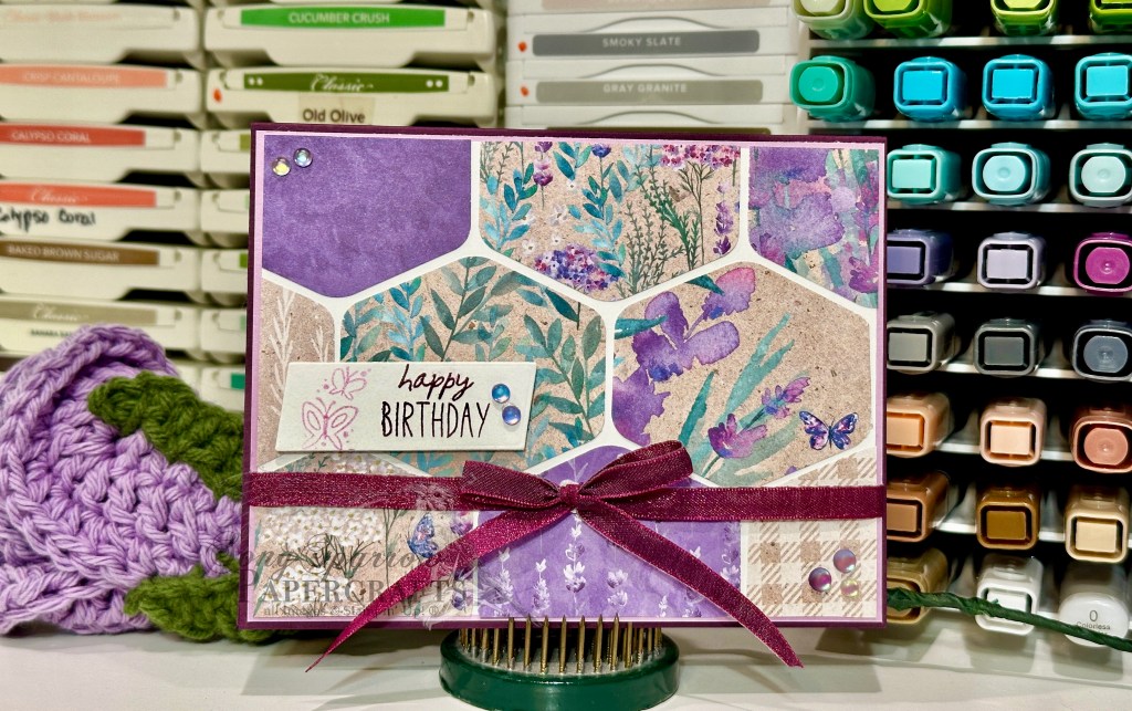 Welcome back! It’s hard to believe but we’re already halfway through this week. Where does the time go? And speaking of stealing some time, today’s card uses a sheet of the Splendid Autumn paper pack that just makes you want to kick back in an easy chair on the breezy porch with a glass of tea and watch the wildflowers dance on the pasture, doesn’t it? Or maybe that’s just me showing my country upbringing.