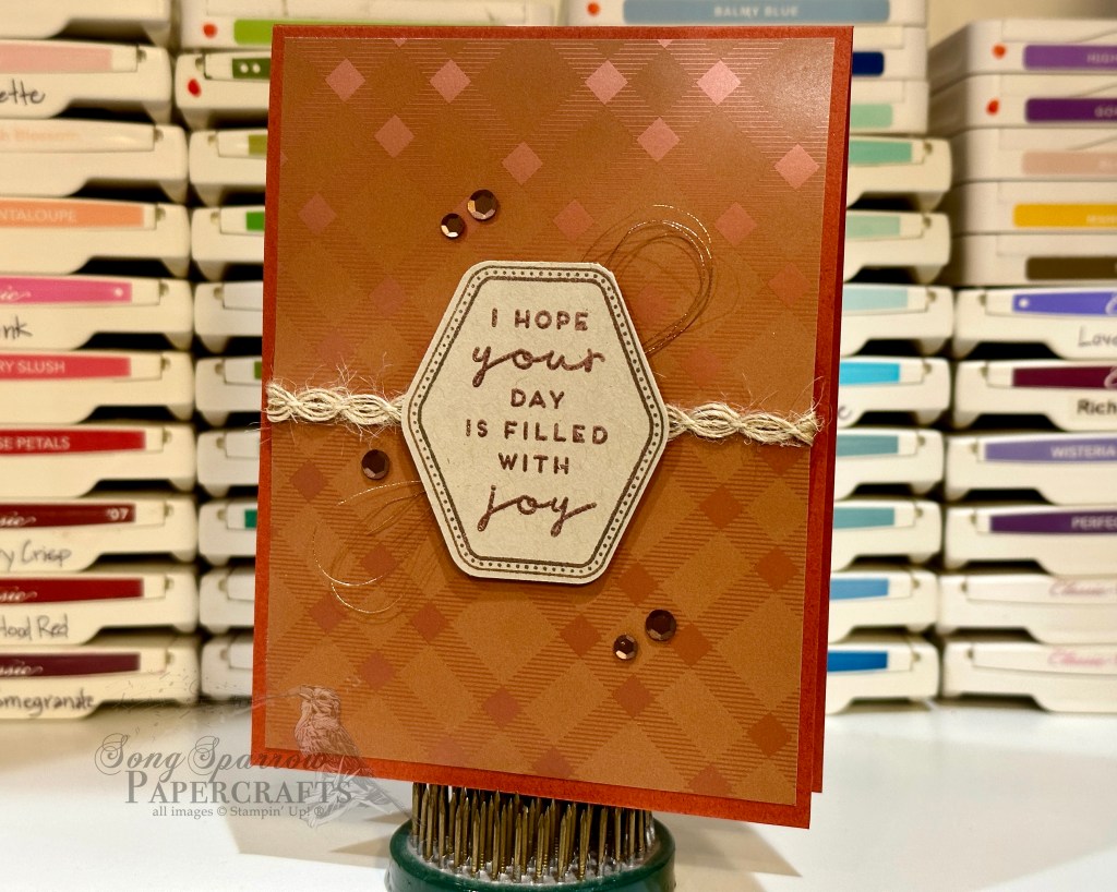 I really loved getting into the groove of Thinking of You Week last week. And having some new supplies certainly added to the fun. The Heartfelt Hexagon bundle that Stampin’ Up! just launched was perfect for the occasion, and today’s design is another take on a clean and simple design using this bundle and the new Tartan Foil designer paper.