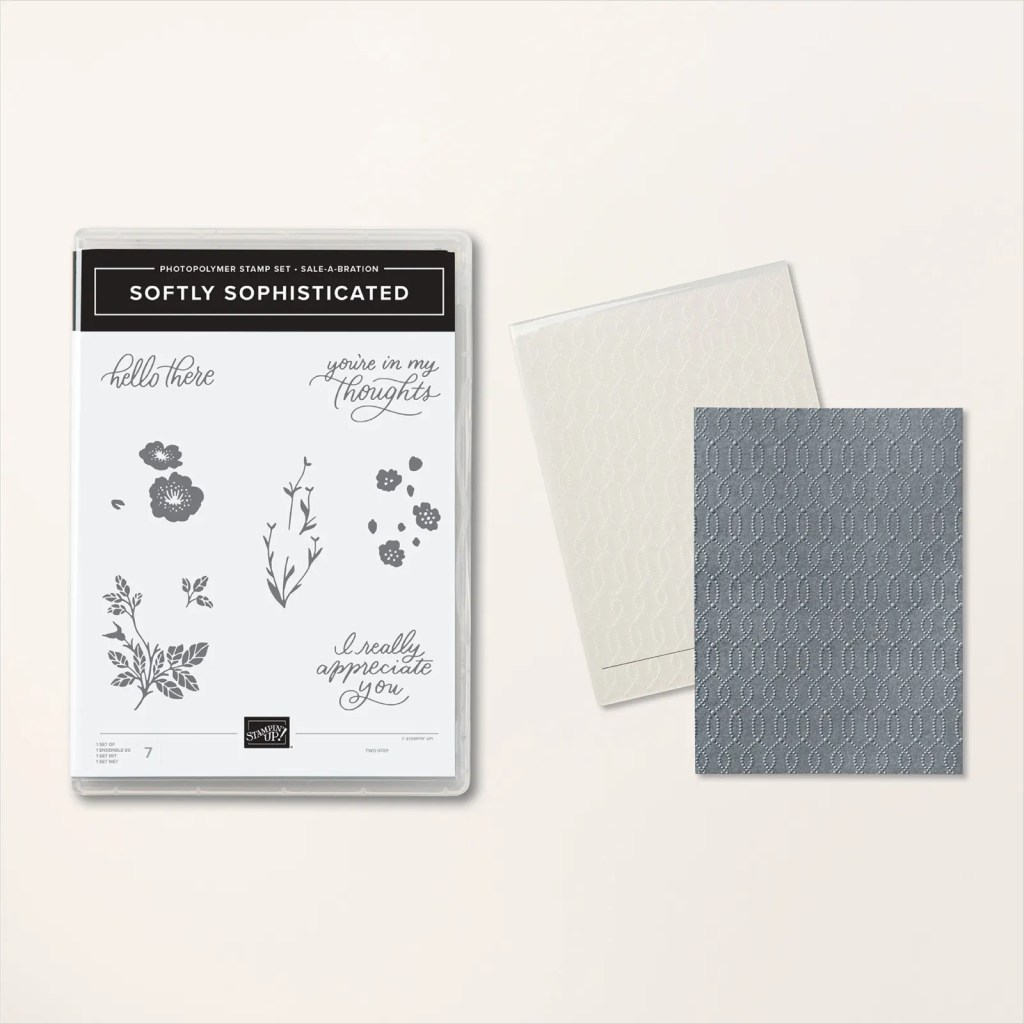 Today’s card design began with a pattern idea and a color palette. As I was making a project to-do list for this week, I knew that I wanted to make patterned paper using the Heartfelt Hexagon stamps and was inspired by the Softly Sophisticated embossing folder in the newly-released Sale-a-Bration catalog. As I was thinking about a color palette for a sympathy card that would appropriately convey both comfort and hope, I was drawn to the combination of Basic Gray, Night of Navy, and Copper Clay.