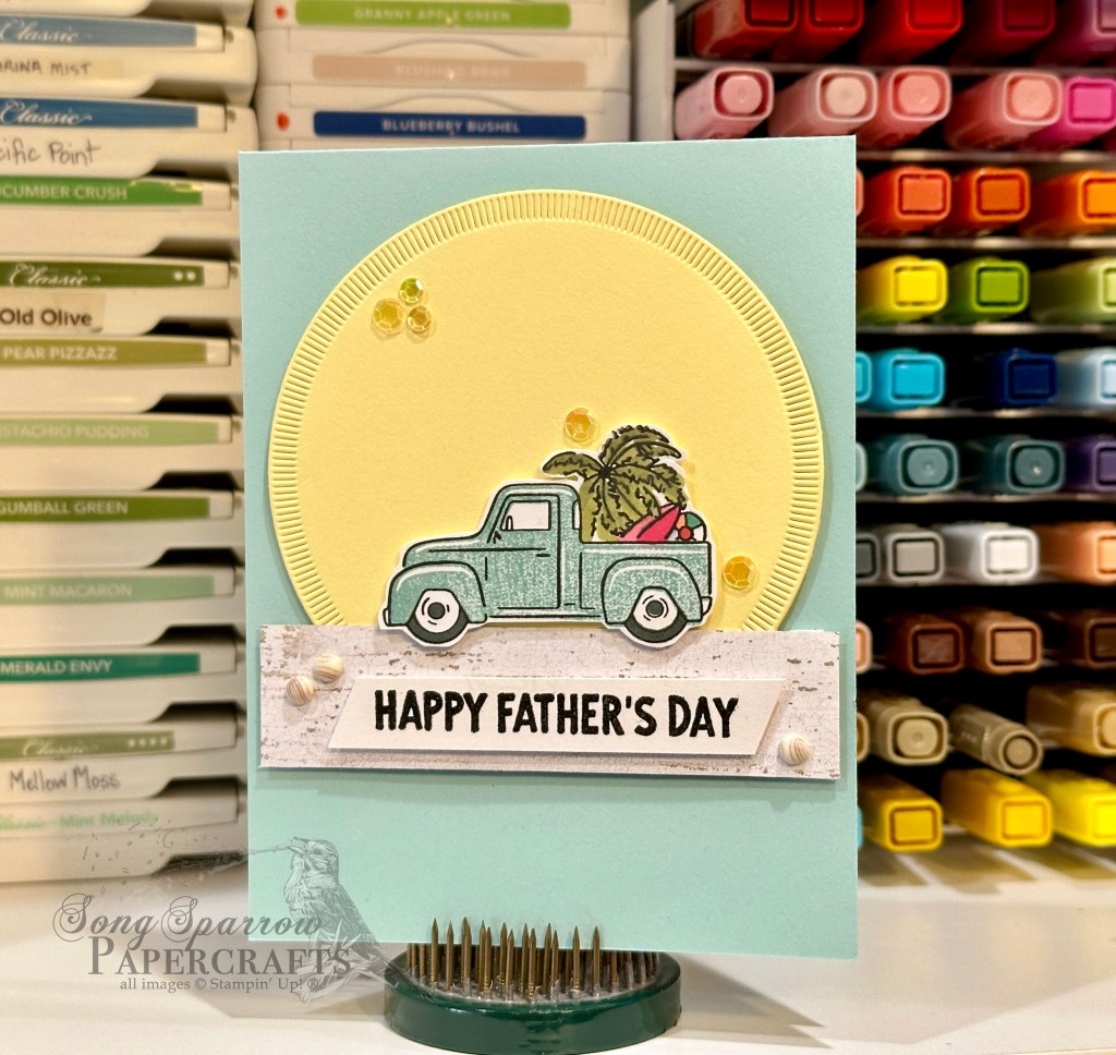 Today, we’re wrapping up our week of touring some of the Stampin’ Up! sets that lend themselves to making great Father’s Day cards. And it seemed only fitting that we finished off with the “truck that broke the internet.” If you’ve followed along here for a little while, you’ve heard me mention this before. For those who are new, when the Trucking Along bundle was first released by Stampin’ Up!, it was so popular that it sold out in hours on release day and quickly sold out each of the next several times it came back in stock.