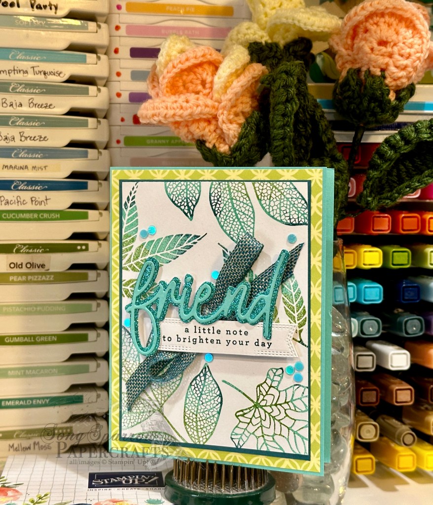 This week, we’re getting a sneak peek at the upcoming Online Exclusive called Changing Leaves. This bundle includes photopolymer stamps, coordinating dies, and a hybrid embossing folder. Today, I wanted to highlight another way you can use this set to create something other than a fall-themed card with a bright and cheery color palette and a fun complimentary product pairing.