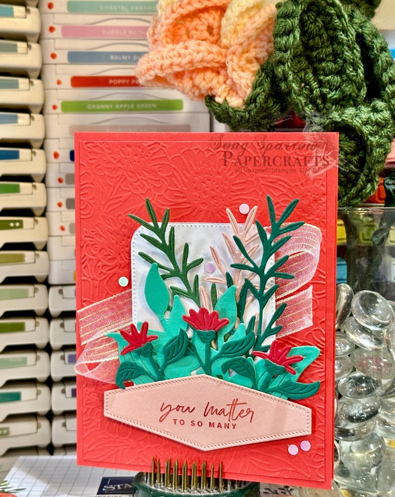 Poppy Parade, Shaded Spruce, Summer Splash, Mossy Meadow, Petal Pink, Real Red, Basic White cardstock