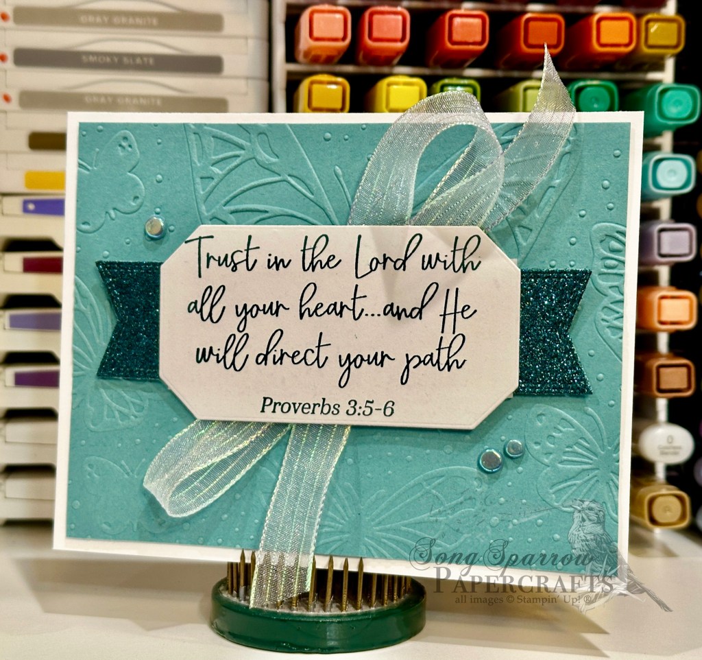 BUT a cold and dreary day on Sunday meant an afternoon playing in the crafty goodness, working on designing for this week’s theme. I’ve been dialed in in all of the pretty patterned papers here lately and have been neglecting some of my favorite crafty tools—embossing tools. This week, our designs will focus on texture and sentiments. And today we get started with the Beautiful Butterflies embossing folder and the scripture from the You Are Beautiful stamp set.