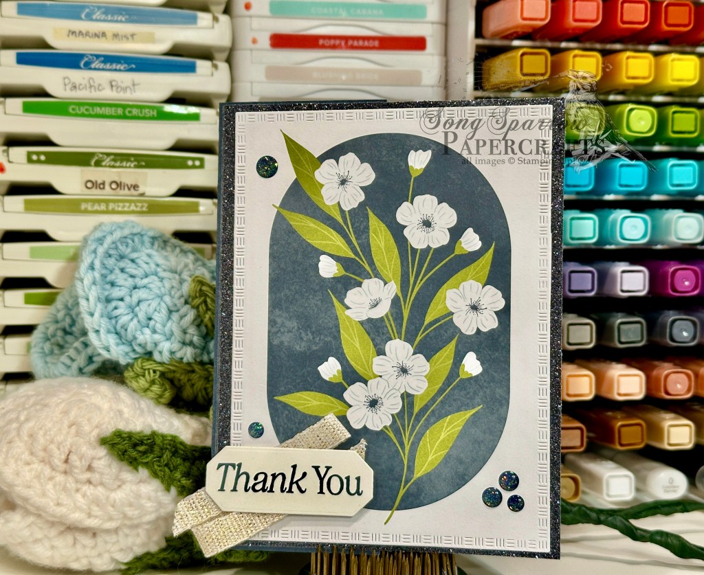 This week, I’m playing with some of my new January Mini Catalog goodies with an up-close look at the new Lovely Blossoms bundle by Stampin’ Up! This terrific bundle includes it all — stamps, dies, embossing folder, paper, embellishments…the works! And one of my favorite things about the paper in this set is the sheet of ready-made card elements. With a pretty tight schedule these days, it’s nice to have ways to still make handmade smiles without hours in the craft room.