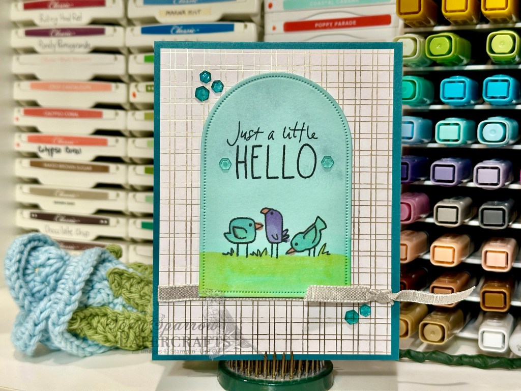We’re rounding out our outdoorsy series of card designs this week with a look through the window at some cute little birdies — just the perfect way to say hello. We’re pairing up the Cutest Crew stamps with Everyday Arches for this one.