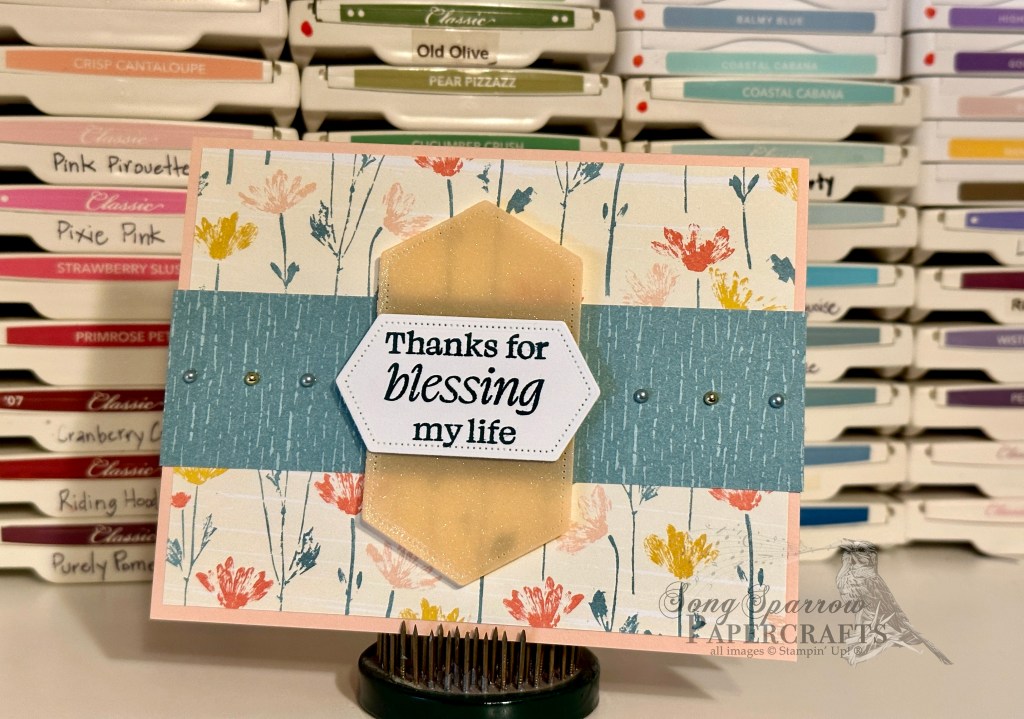 This suite of cards features the Paper Blooms designer paper. I’m especially pleased with the two new foldover designs and will definitely be incorporating these folds on a more regular basis. Both are simple to make and produce stunning designs.