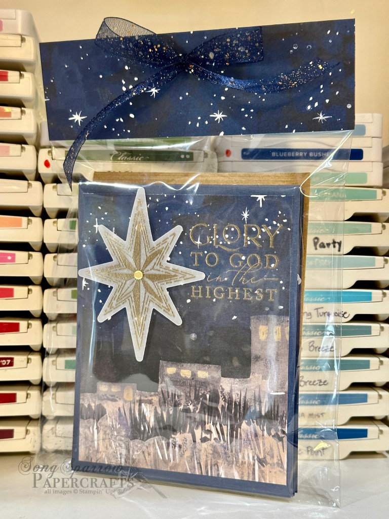 Here are examples of a few card packs that I packaged for upcoming craft fairs. It’s important to me that the card design is clearly visible through the packaging and an insert is included on the back to show the inside sentiment, which can be especially important to customers when they’re selecting cards. Because larger sets of cards result in thicker packaging, a top closure is necessary and a nice coordinating paper and ribbon really dress things up!
