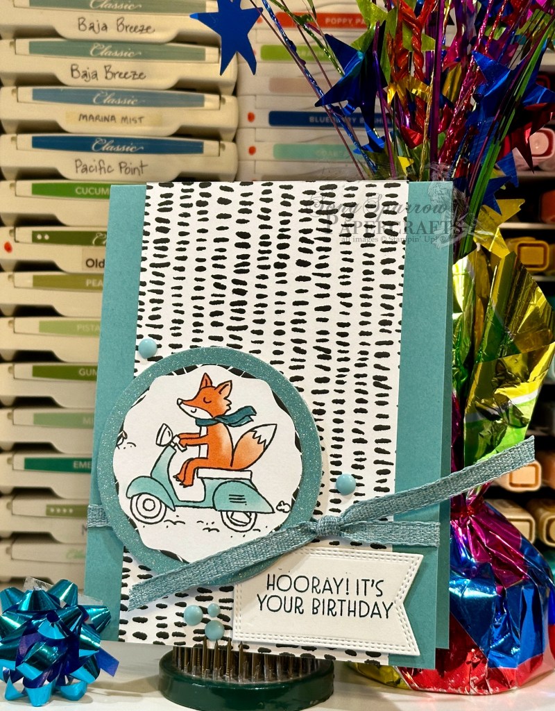 We’re tagging along with the Zoo Crew this week as they take a few more adventures before retiring with the 2023-24 Annual Catalog. I’m going to miss these guys! The stamps and designer papers have offered so many fun design opportunities.
