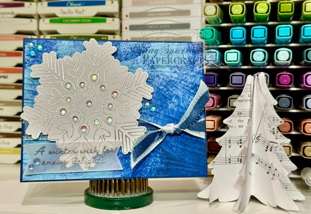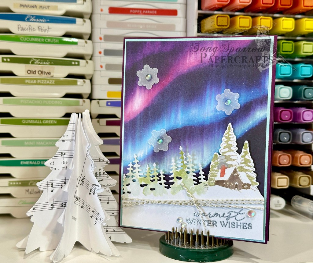 So here we are at Monday again and time for a new design challenge. This week, we’re thinking about the upcoming Valentine holiday, if we want to call it that. It’s actually a perfect time to let your friends know you’re thinking of them — and that special someone too, of course! So we’re starting off with one for the fellas since they didn’t really get their due last week. And we’re combining the new Aspen Grove stamp set with the Country Woods paper and a sentiment from the 2025 Advent Calendar.