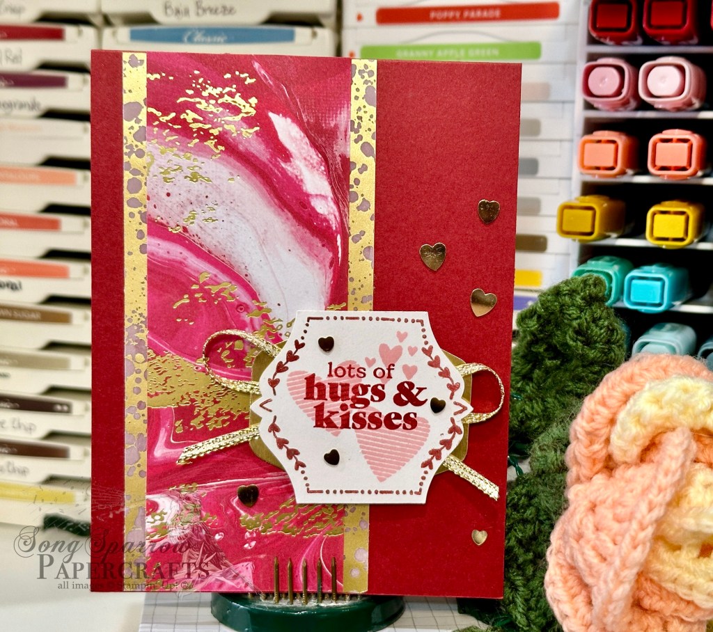 We’re going to close out our week of working with the new Stampin’ Up! Hugs for Love bundle with today’s bonus card. I’m pairing it up once again with the Timeless Plaid paper, which is also a new release, and using Sketch #6 from the new January Mini catalog.