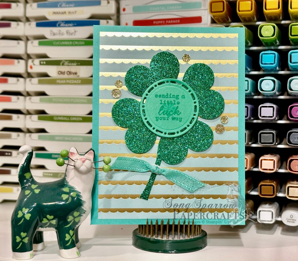 It’s easy peasy and oh so cute! You don’t have to a lot of pieces or a complicated design to create super cute cards. I’ll be taking a little break tomorrow for Ash Wednesday. But I plan to be back on Thursday to bring you some more luck. I hope you’ll drop by and see!